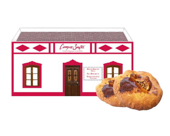 A Campos Santos portugál kistermelő fügés kekszeit (bolachas de figo) az Algarve régió hagyományos süteményei ihlették, ahol a szárított füge régóta alapvető hozzávalója a mindennapi édességeknek. A természetesen édes és aromás füge lágy textúrát és enyhén karamellizált ízt ad ezeknek a kekszeknek, anélkül, hogy túl cukrosak lennének.