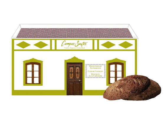 Ezek a kekszek helyi receptek alapján készülnek, kiegyensúlyozott állagúak és enyhén kakaós ízűek, amely teljes egészében a szentjánoskenyérből származik. Nem túl édesek, és a csokoládéalapú kekszekhez képest egyedi alternatívát kínálnak, tükrözve az Algarve mezőgazdasági hagyományait.