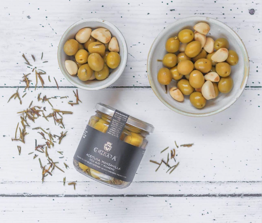A La Chinata Manzanilla olívabogyói fokhagymával és rozmaringgal ízesítve készülnek, így a hagyományos spanyol olajbogyófajta karaktere mediterrán fűszerekkel egészül ki.