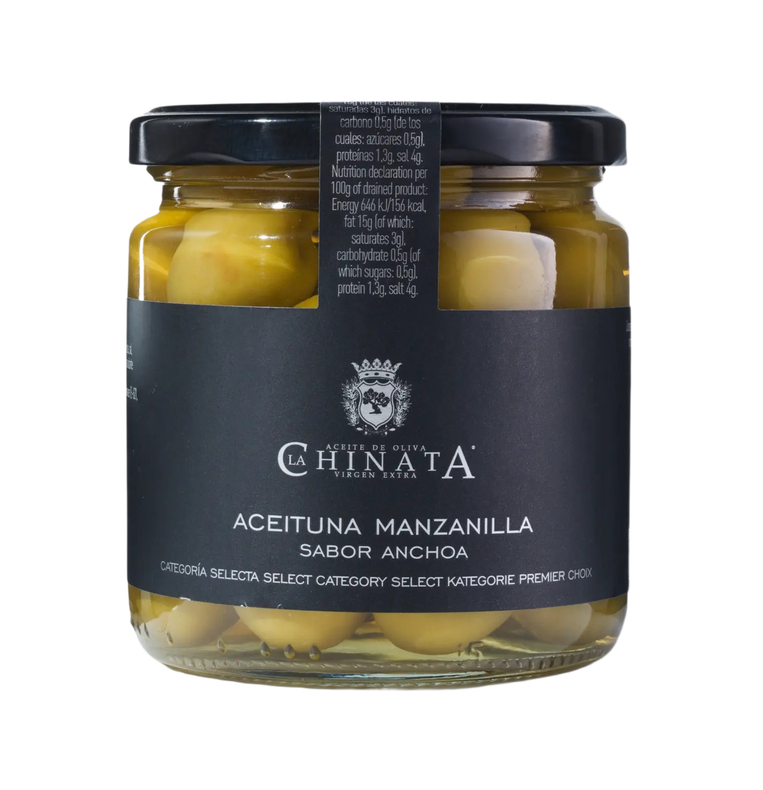 Ez a Manzanilla zöld olajbogyó szardellakivonattal ízesítve a La Chinata egyik bestsellere. Karakteres ízű készítmény, amely a tenger aromáit ötvözi az olívabogyó ízével.