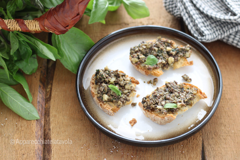 A Pesto Nero a klasszikus pesto egy igazán különleges változata, amely a liguriai Taggiasca olajbogyók kifinomult ízét ötvözi a földrajzi eredetvédett genovai bazsalikom frissességével.